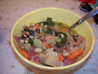 Traditionally a lot of folks prefer to make some version of split pea soup, but I decided to make something I call “Crisper Drawer Stew.” What exactly is in Crisper Drawer Stew? It’s not quite everything but the kitchen sink…it’s actually all the veggies left in the crisper drawer that need to be cooked. Plus, it being New Years and all, it’s tradition to eat black eyed peas for good luck in the coming year.