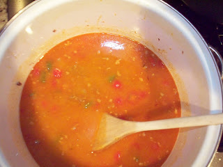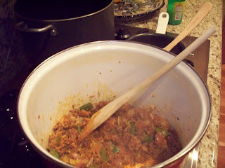 Heat a large stock pot (one that has a well-fitting lid) over medium heat. Add the chorizo and cook, stirring and breaking apart into smaller chunks. Once cooked, pour off some of the grease into a jar or container (never down the sink!), leaving some of the oil in the pot with the meat.