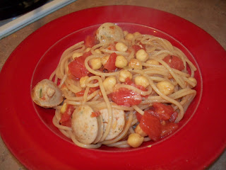 Every now and again I go on grocery strike. It usually happens after I open the cupboards and several somethings fall out onto my head. After a flurry of Turret’s, I vow to do some cooking with the items in my pantry and not add anything new until I’ve depleted some of the old stashes.This recipe is one such recipe–created after almonds binged me on the top of my pretty little head. All the items used were ones I had on hand in the pantry (or the freezer in the case of the sausage).