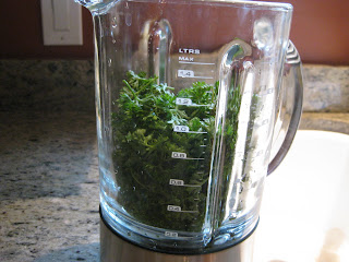 I squeezed in the juice from the half of a lemon and tossed in a few garlic cloves. Then I added the olive oil, and blended it together. Making pesto involves the Goldilocks paradigm: If the pesto is too creamy, add more herbs; if it’s too piecey, add more olive oil. You want a texture and consistency that is just right.