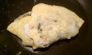 –4 eggsHeat a skillet over medium heat. When the pan is warm add the olive oil and coat the pan. Sauté the onion and garlic for a few minutes, stirring regularly. Add the mushrooms and sauté for several minutes, stirring regularly, until they begin to soften and cook down. Using a fork, scrape off the goat cheese log into the pan. This will give you small crumbles that will melt and coat the veggies nicely. Stir to combine and remove the filling to a small plate.