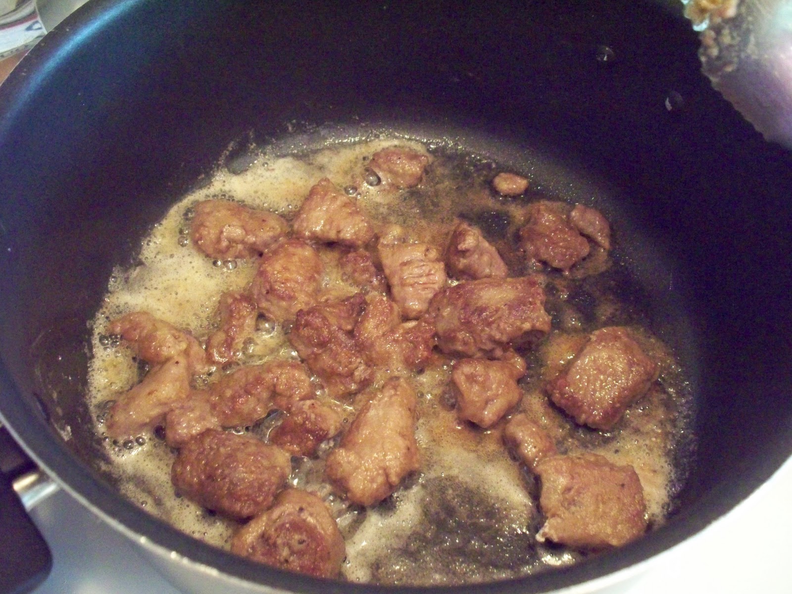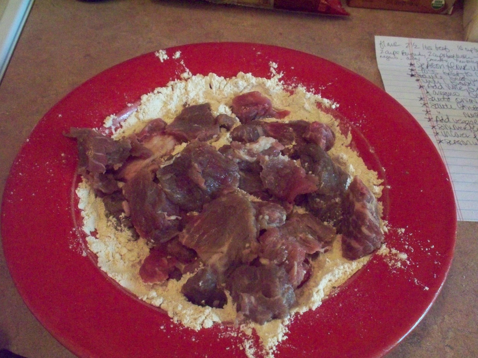 Season the flour with salt and pepper. Dry the beef with a paper towel and then toss in the flour to coat. You want the beef nice and dry so it will sear beautifully. Working in batches, sauté beef in the bacon grease until browned on all sides. Remove and set aside.